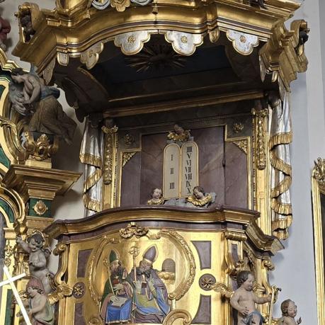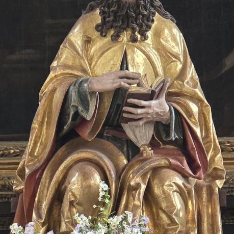 Auf dem achteckigen Tabernakel sitzt eine spätgotische Statue des hl. Jakobus d.Ä. die dem Meister von Rabenden zugeschrieben wird. Sie gehörte wohl einst zur gotischen Ausstattung der Kirche und datiert auf die Zeit um 1500.